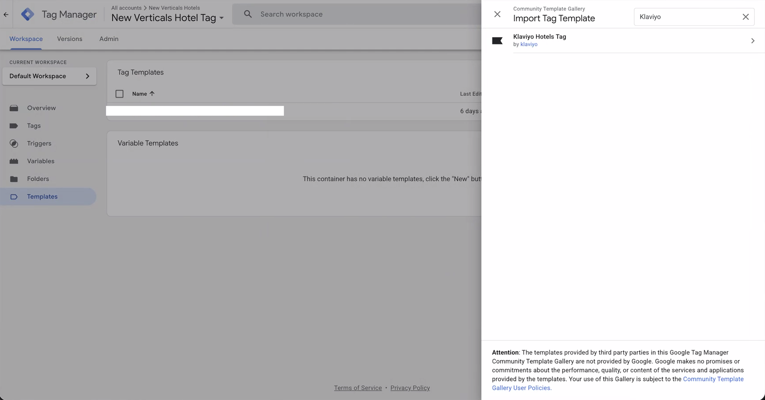 Paso 3: Añade la plantilla de hoteles de Klaviyo en GTM