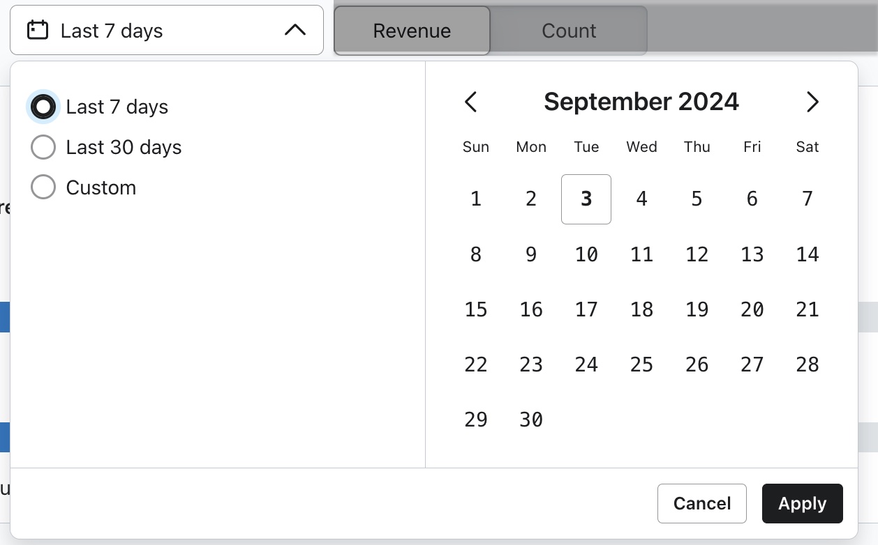 - Opcional: selecciona laopciónContar para revisar los datos por recuentos totales en lugar de por ingresos.