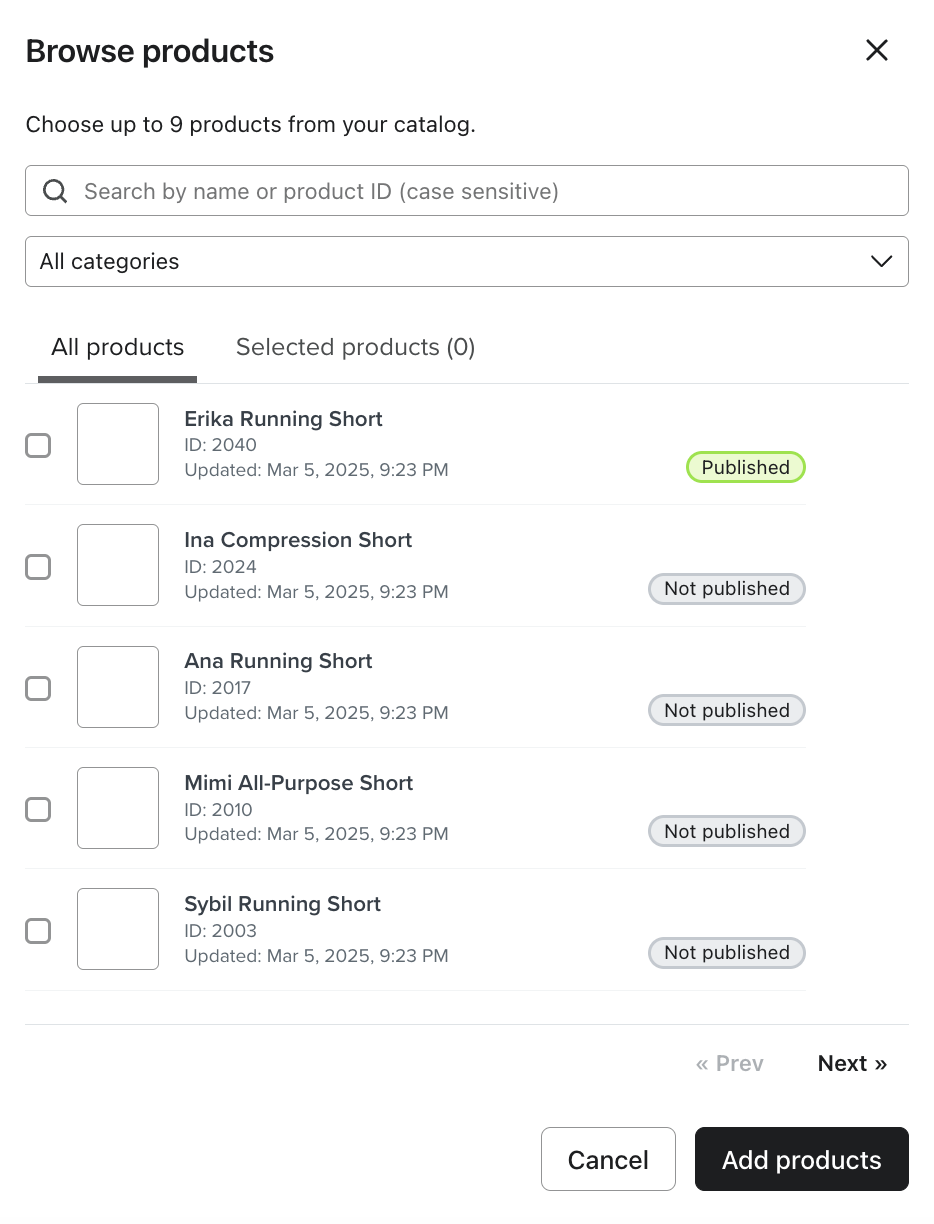 Selecciona manualmente productos de tu catálogoSelecciona manualmente productos de tu catálogo