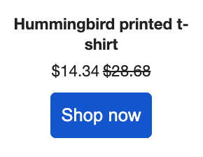 Si utilizas descripciones personalizadas, te recomendamos que cada descripción tenga menos de 120 caracteres. Mantén una longitud similar en las descripciones de cada artículo para evitar problemas de alineación con este bloque en tu correo electrónico. Las descripciones personalizadas sólo se admiten para la fuente estática de productos.