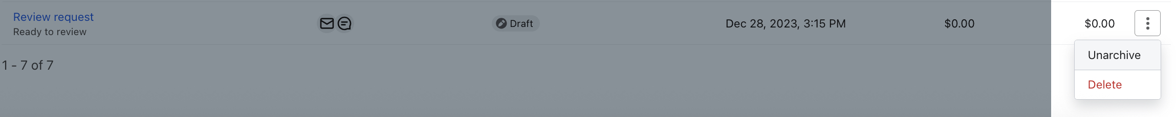 - Haz clic en el icono Acciones situado a la derecha del flujo que quieras archivar.
