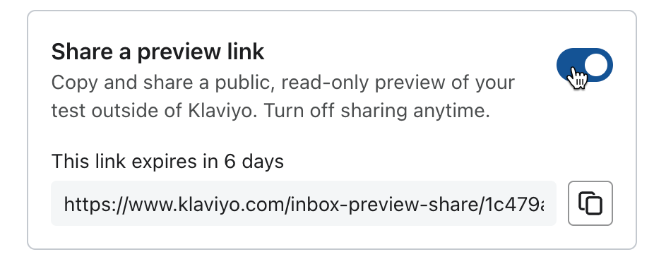 - Una vez completada la prueba de la bandeja de entrada, active la configuración Compartir un enlace de vista previa.
