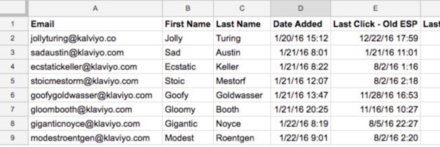Tendrás que formatear cada archivo CSV antes de importarlo a Klaviyo: