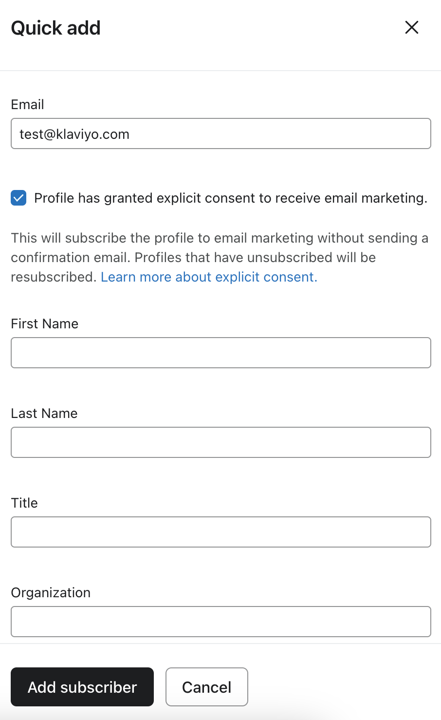Añade un suscriptor a través de la Adición Rápida (sólo correo electrónico)