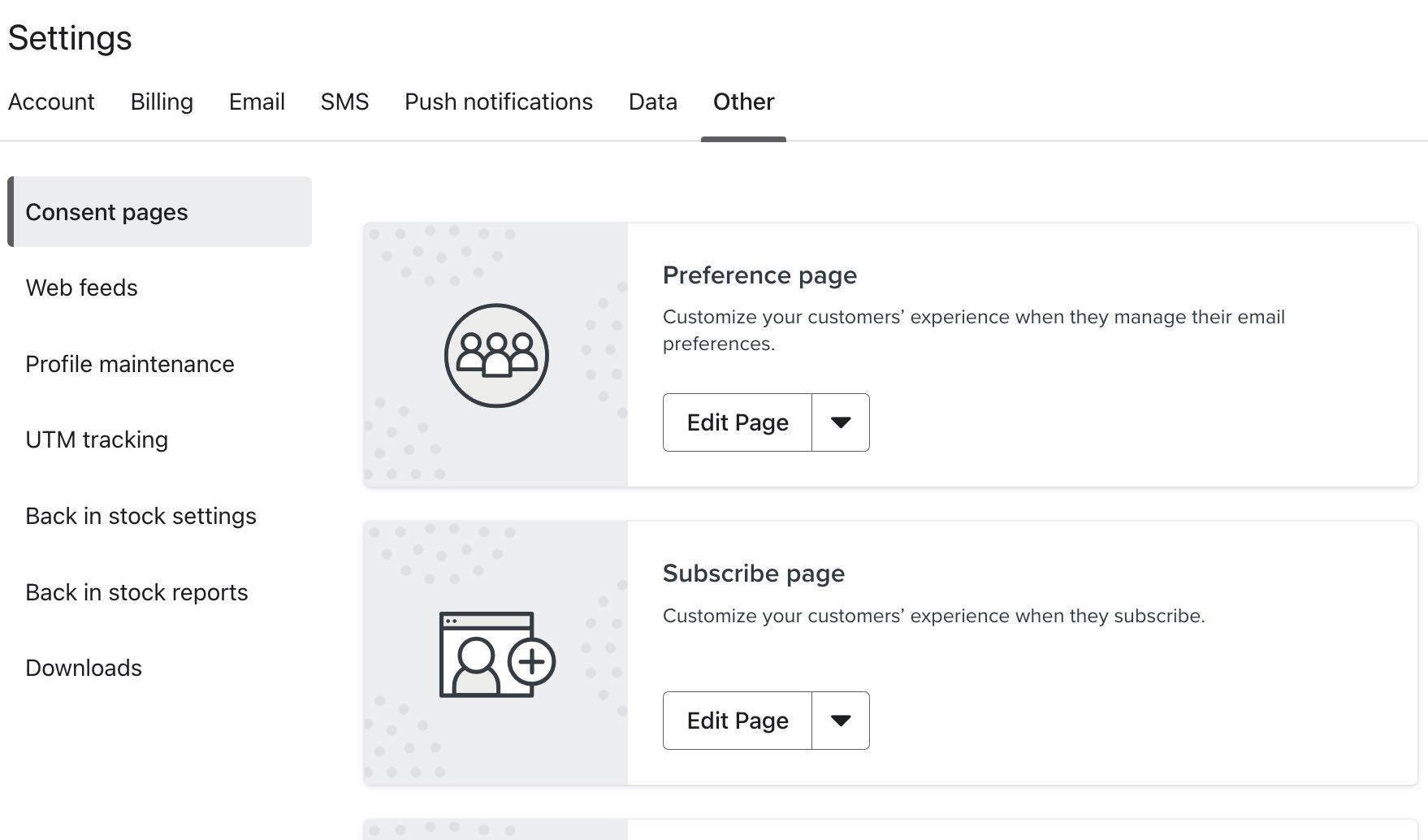 Por defecto, cada vez que crees una nueva lista, utilizará automáticamente las páginas de consentimiento predeterminadas de tu cuenta (página de gestionar preferencias, página de suscribirse y página de cancelar la suscripción). Las páginas de consentimiento predeterminadas de la cuenta estandarizan una experiencia coherente para el suscriptor; sin embargo, también puedes optar por crear un nuevo conjunto de páginas de consentimiento específicas para 1 lista.