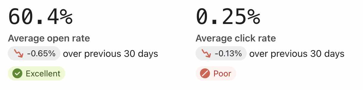 Abre la sección Rendimiento del correo electrónico en los últimos 30 días para ver cuántas campañas has enviado en los últimos 30 días y su rendimiento medio.