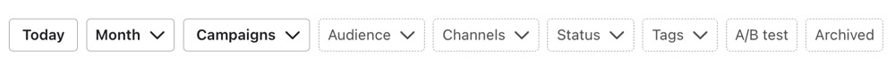 Utiliza los distintos desplegables de la barra de filtros para mostrar sólo campañas específicas en función del tipo o de los detalles de la campaña.