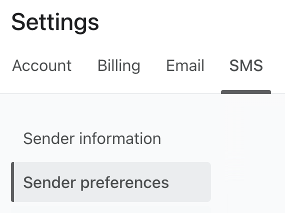 - Haz clic en Configuración > SMS > Preferencias del remitente.