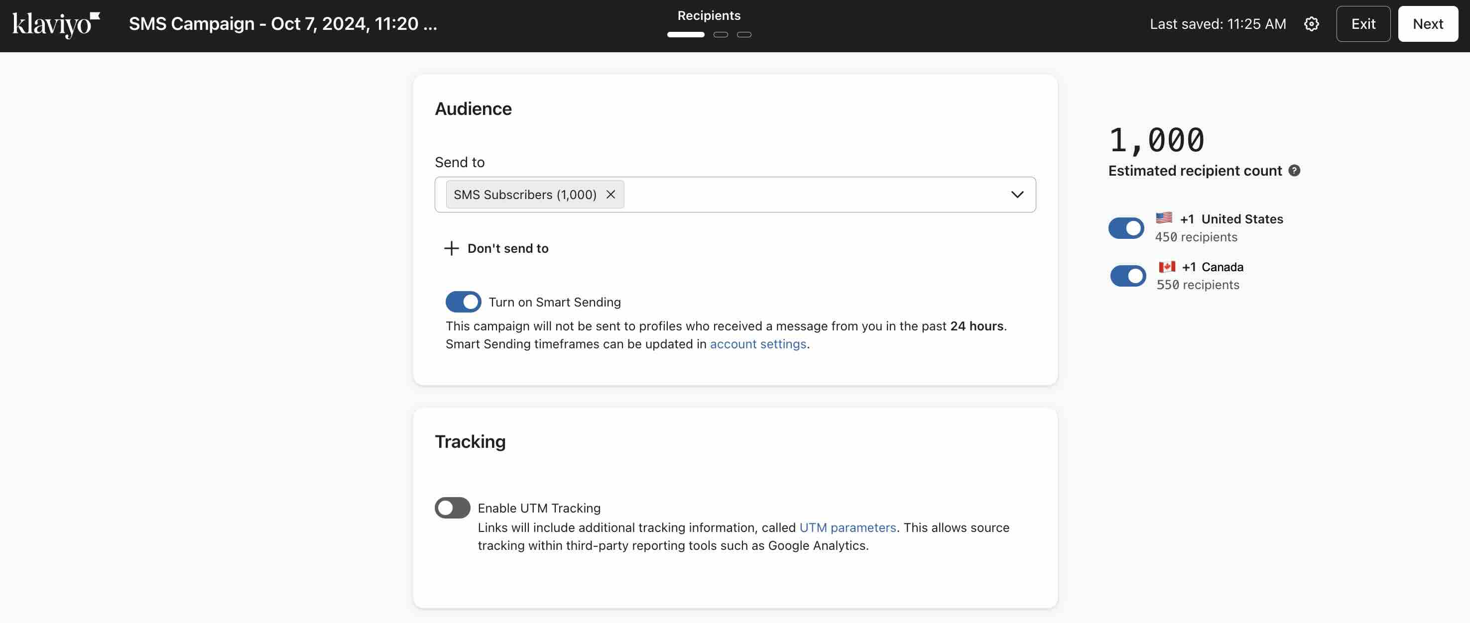 Digamos que tienes un número gratuito para EE.UU. y un código largo para el Reino Unido. Para enviar a todos tus suscriptores, no tienes que configurar varias campañas. En cambio, sólo necesitas 1 campaña, ya que Klaviyo utilizará automáticamente tu número gratuito para los destinatarios con número de EE.UU. y tu código largo para los destinatarios con número de Reino Unido.