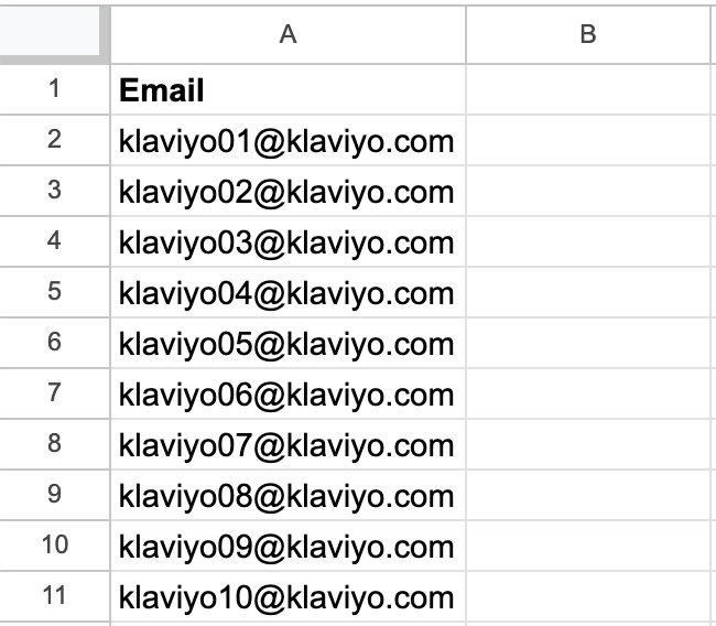 3. Elimina todas las columnas de la hoja de cálculo excepto la columna con la cabecera correo electrónico.