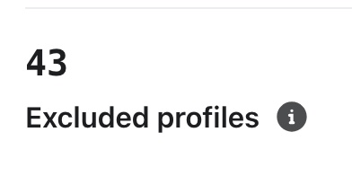 En la parte inferior de tu tarjeta, puedes revisar cuántos perfiles únicos en total fueron excluidos de la comercialización por SMS durante este periodo de tiempo. Estos perfiles pueden haber sido excluidos por diversas razones, entre ellas: tener un número no válido, que se haya detectado un teléfono fijo, que se haya bloqueado el mensaje, que el operador haya desactivado la línea, o que hayan cancelado la suscripción de SMS por completo. Ten en cuenta que el perfil excluido sólo representa al perfil que dio su consentimiento a SMS en un momento dado.
