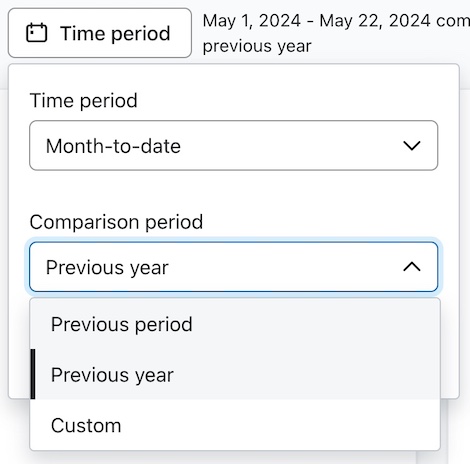 - Para cambiar el periodo de comparación, haz clic en el desplegable Periodo de comparación.