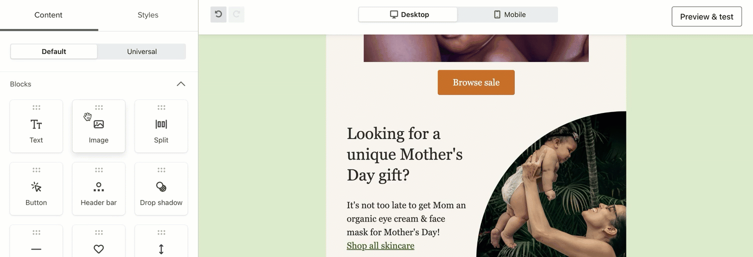 Aprende a añadir, editar y dar estilo a un bloque de texto en un correo electrónico utilizando el editor de correo electrónico de arrastrar y soltar de Klaviyo.