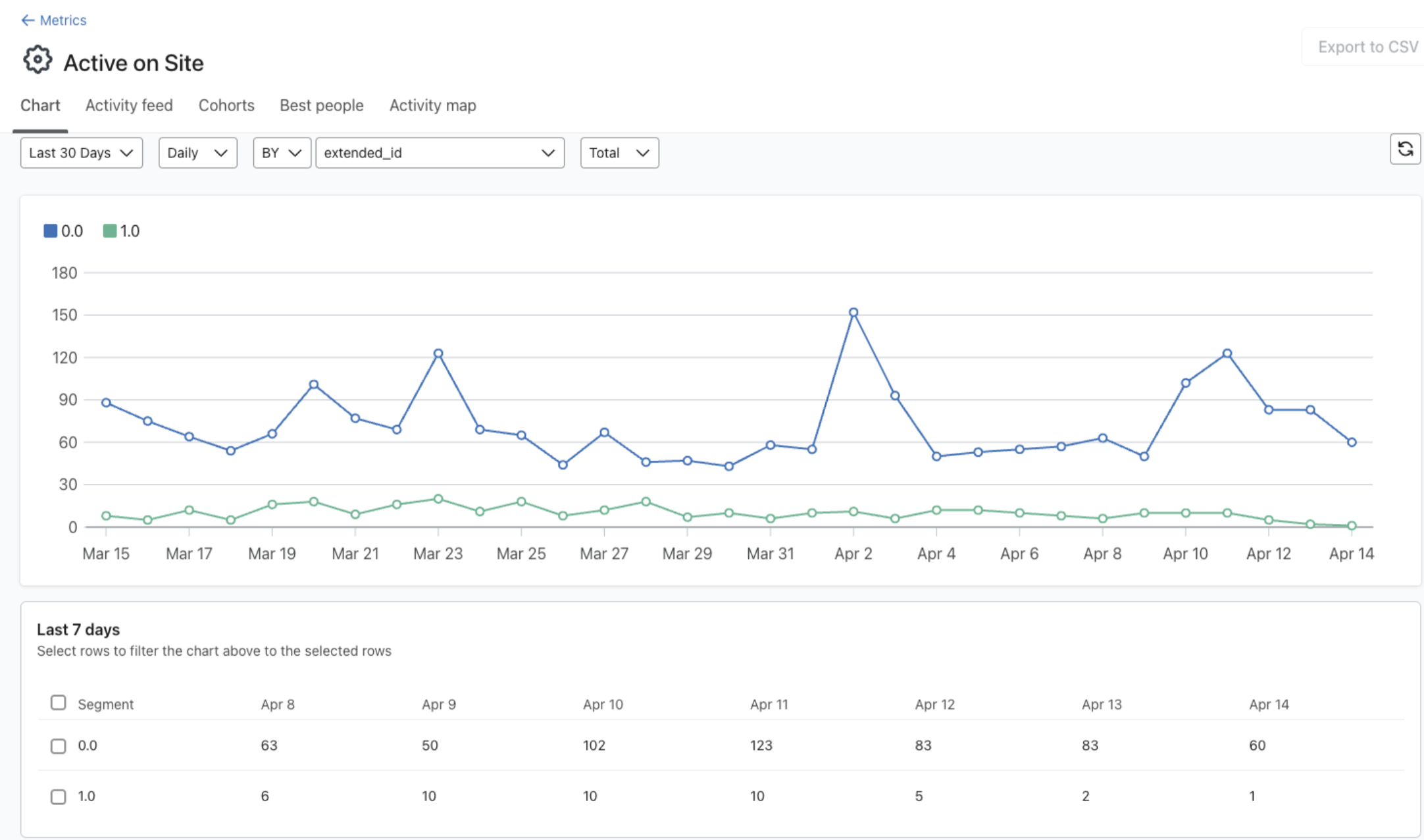 Para ver el impacto de la ID ampliada en la capacidad de tu marca para identificar a los visitantes, puedes aprovechar el evento con actividad en el Sitio.