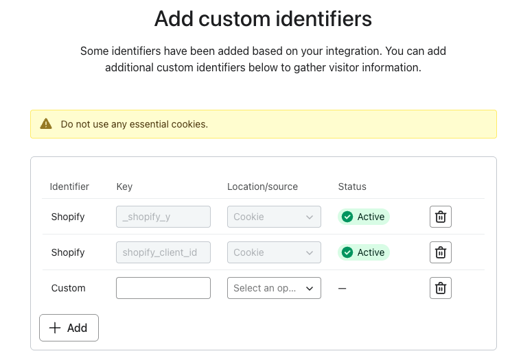 Opcional: haz clic en el botón + Añadir para añadir más identificadores personalizados si es necesario.