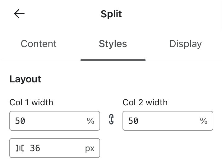 - En Contenido de la columna, elige si el lado actualmente seleccionado de la división debe contener una imagen o texto.
