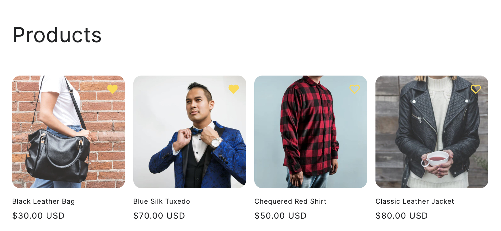 Continúa en la siguiente sección para obtener orientación sobre cómo añadir botones de favoritos a las páginas de detalles del producto.