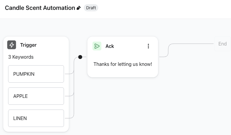 Una vez que actives una automatización, se enviará a cualquier suscriptor de SMS que envíe una palabra clave desencadenante.