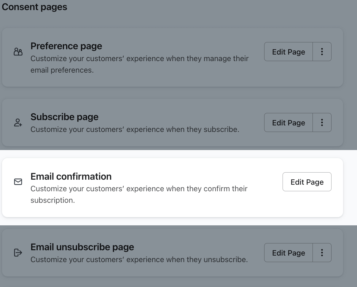 - Para editar tu página de suscribirse a nivel de cuenta, selecciona Configuración > Otras > Páginas de consentimiento.