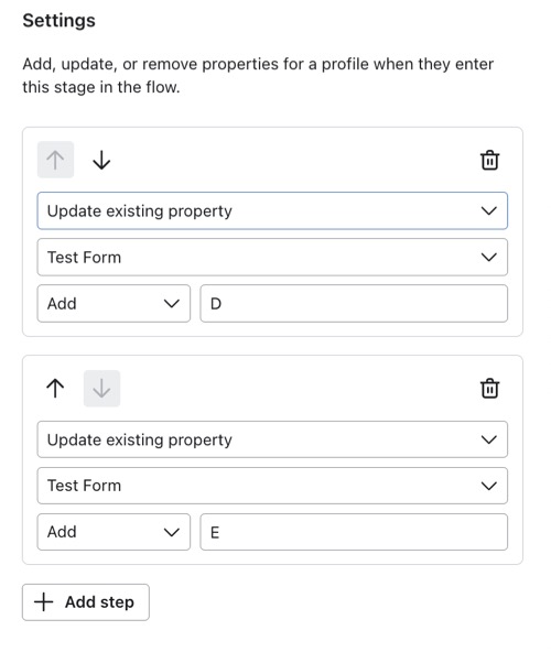 - (Opcional) Vuelve a hacer clic en +Añadir paso para actualizar varias propiedades del perfil a la vez