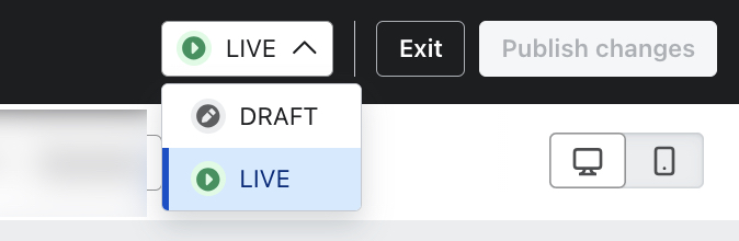 - En la esquina superior derecha, selecciona el desplegable de estado de la parte superior derecha (donde pone En directo, Editando o Borrador).
