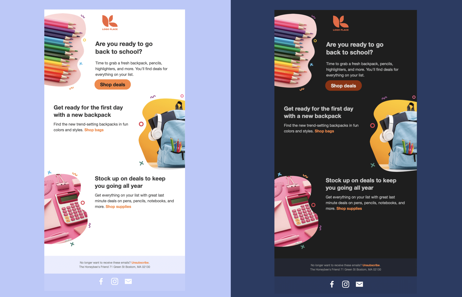 Si dispones de un equipo de desarrolladores que pueda personalizar el código HTML de tu correo electrónico desde cero, puedes proporcionar CSS que detecte si un espectador está utilizando el modo oscuro o claro y ajustar el diseño en consecuencia. Esto puede anular ciertos valores predeterminados del modo oscuro en algunas bandejas de entrada, para que tengas más control.