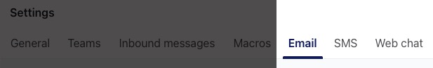 Dependiendo del canal de asistencia para el que esté empleando Inbox, hay ajustes que puede configurar a través de las pestañas correspondientes en la barra de menú de ajustes.