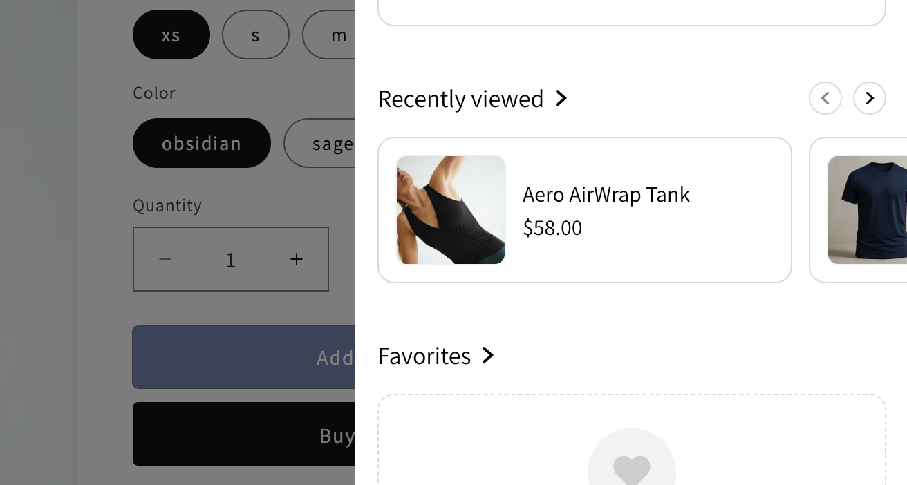 Tanto los Favoritos como las Preguntas Frecuentes funcionarán dentro del cajón de Klaviyo Customer Hub. Sin embargo, puedes agregar estos widget también en las PDP para una interacción adicional.