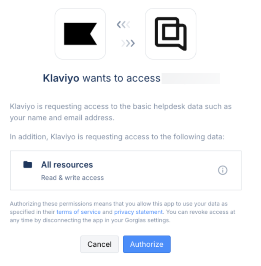 - Permite el acceso de Klaviyo a todos los recursos haciendo clic en Autorizar.