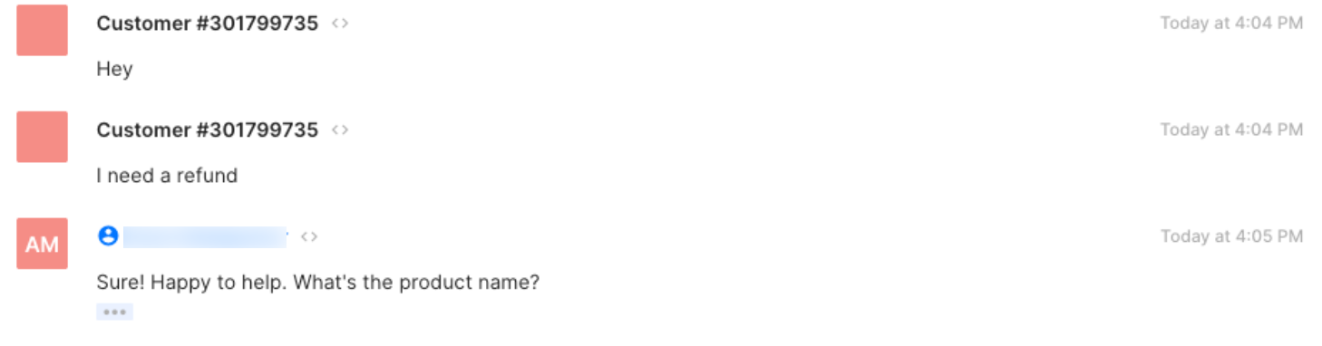 Tu agente del equipo de asistencia puede responder al cliente en Gorgias, y la respuesta se enviará a través de tu número de empresa de WhatsApp.