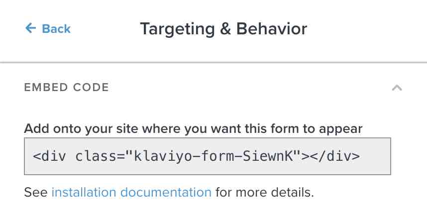 - Copia el código en la sección Código de incrustación, que necesitarás para la página de destino que crees en el siguiente paso.