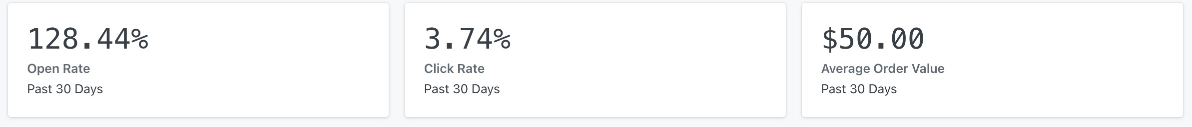 Pour ces rapports, le taux d’ouverture correspond au nombre total d’ouvertures divisé par le nombre total d’e-mails délivrés. Ce calcul est différent de celui de Klaviyo qui se base sur les taux d’ouverture pour chaque campagne, c’est-à-dire les ouvertures uniques divisées par le nombre total de livraisons de cette campagne spécifique.