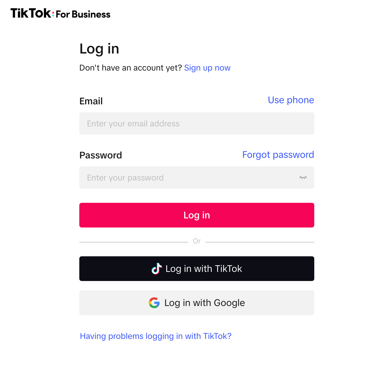 - Il vous sera demandé de vous connecter à votre compte TikTok for Business, si ce n’est pas déjà fait.
