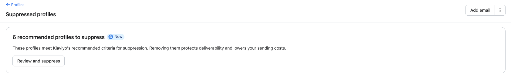 Une fois que vous avez confirmé, Klaviyo ne suspend que les profils inclus dans la fenêtre modale de recommandation. Les autres profils actifs de votre compte ne sont pas affectés.