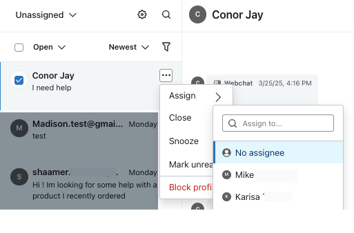 Vous disposez de 3 options pour attribuer des tickets dans le service d’assistance Klaviyo :