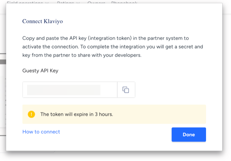 - Collez la clé d'API de Guesty que vous avez copiée dans la boîte.