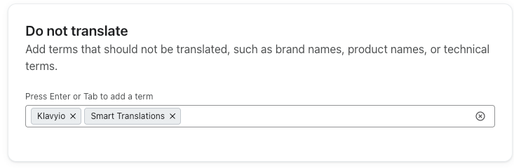 La fonctionnalité « Ne pas traduire » vous permet de spécifier une liste de termes, de noms de marque ou d’expressions qui doivent être exclus de la traduction automatique.