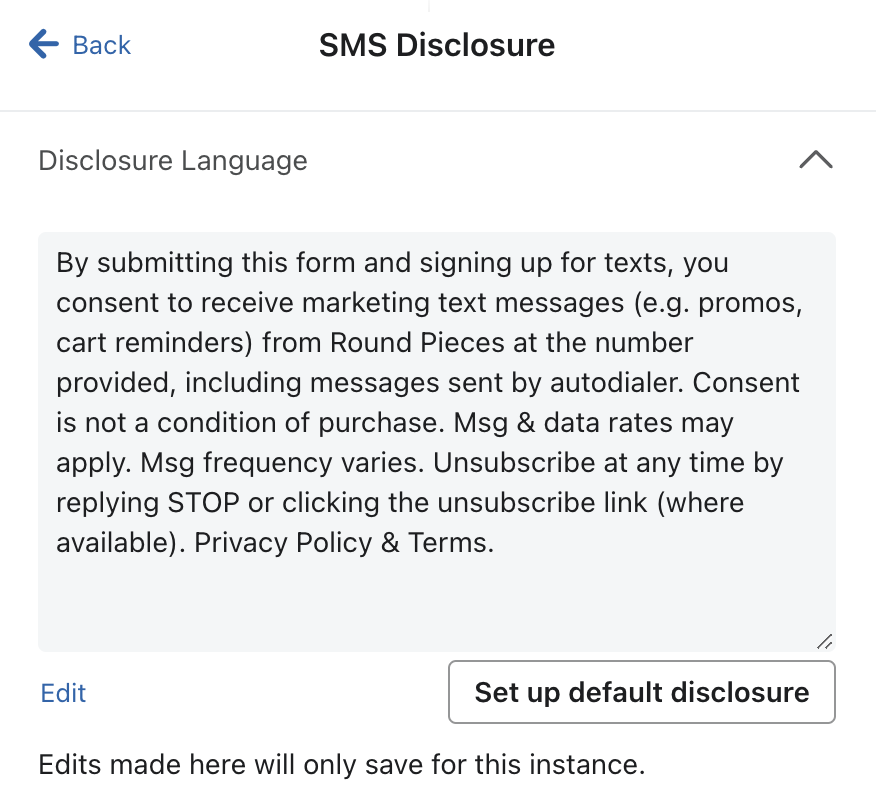Una parte importante della conformità agli SMS consiste nell'assicurarsi che le persone sappiano a cosa stanno partecipando ovunque si raccolga il consenso. Ogni volta che utilizza un link di iscrizione agli SMS, deve aggiungere la lingua di divulgazione.