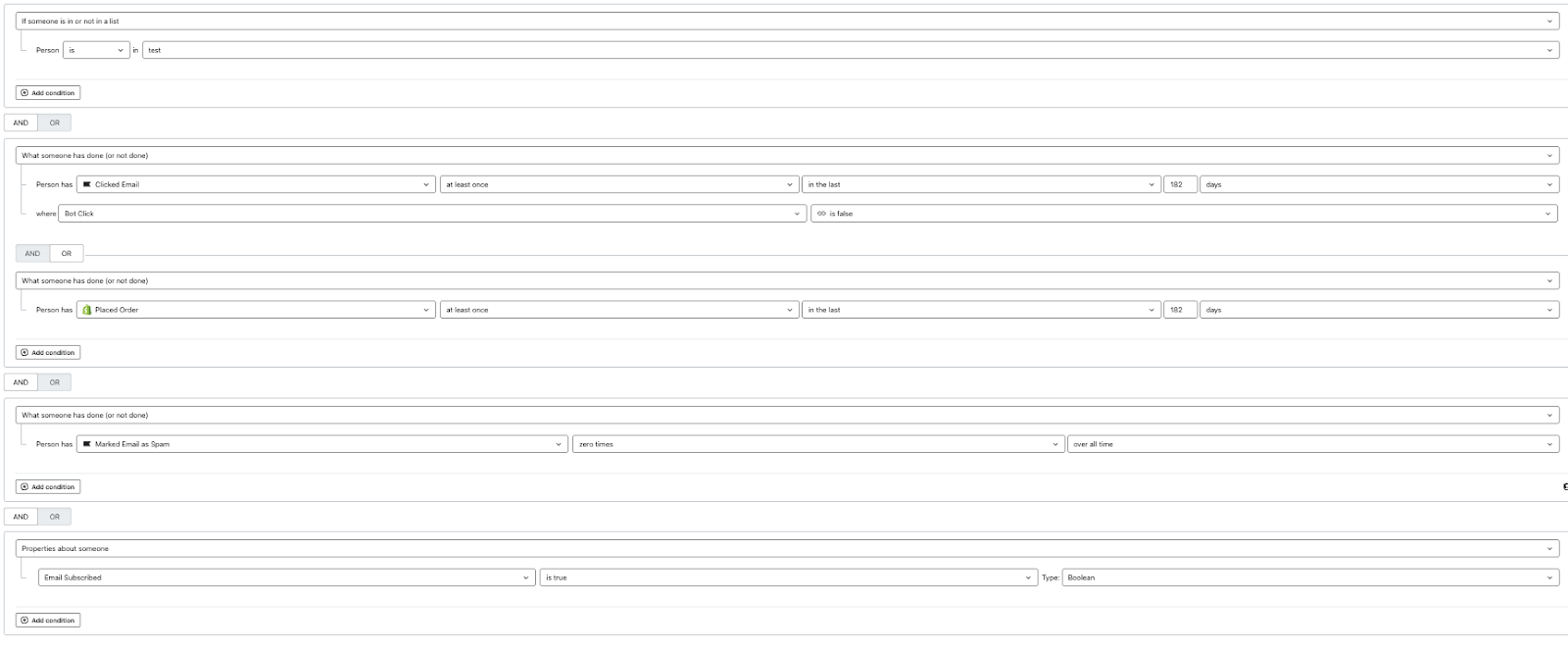 - E il profilo ha un clic (non-bot) di e-mail verificata da un utente umano O ha effettuato un acquisto negli ultimi 6 mesi