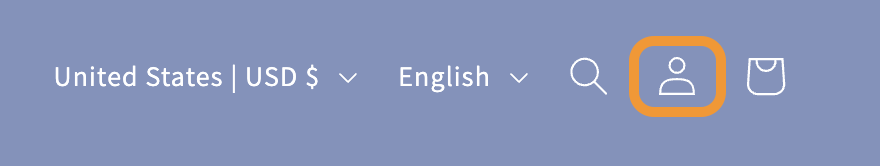 Una volta attivo, l'esperienza onsite di Klaviyo Customer Hub sostituisce le pagine di accesso all'account predefinite di Shopify con un cassetto scorrevole dinamico o un pannello fluttuante. I visitatori del sito possono accedere al Klaviyo Customer Hub in qualsiasi pagina cliccando sull'icona dell'account o navigando nella pagina /account del tuo sito web. Puoi anche aggiungere un piccolo widget fluttuante in ogni pagina per aiutare i clienti ad accedere al Klaviyo Customer Hub.