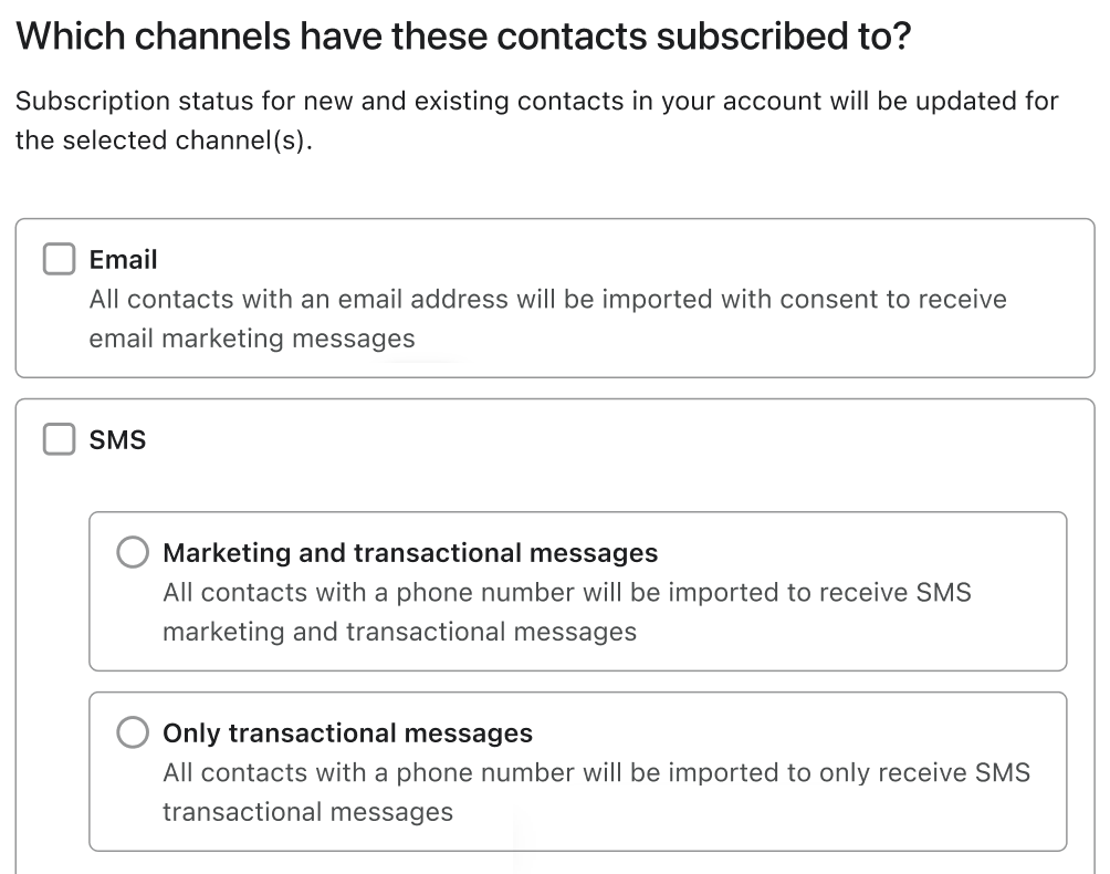 Scopri come aggiungere e rimuovere il consenso agli SMS transazionali o di marketing in Klaviyo. L'importazione del tuo SMS iscritto è una parte essenziale della migrazione del provider o semplicemente del consolidamento dei tuoi dati.