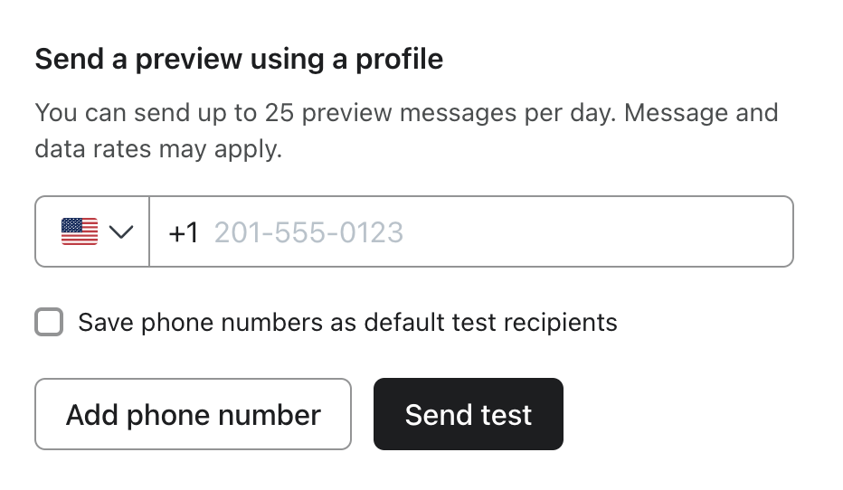 - Opzionalmente, selezioni l'opzione Salva il numero di telefono come destinatario di test predefinito, se intende utilizzare quel numero per i test in futuro.