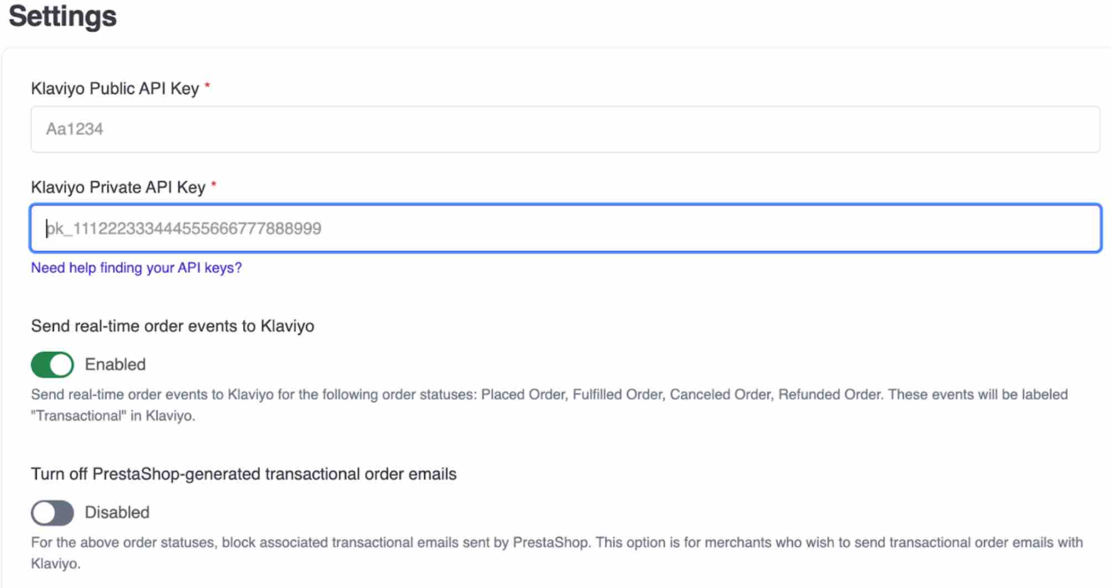 4. Abilita la funzione di sincronizzazione degli iscritti e-mail di PrestaShop con Klaviyo se desideri sincronizzare gli iscritti e-mail raccolti al momento del pagamento o tramite un modulo di iscrizione.