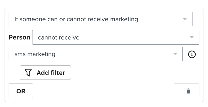 - Imposta split su Se qualcuno può o non può ricevere marketing > non può ricevere > marketing via SMS.