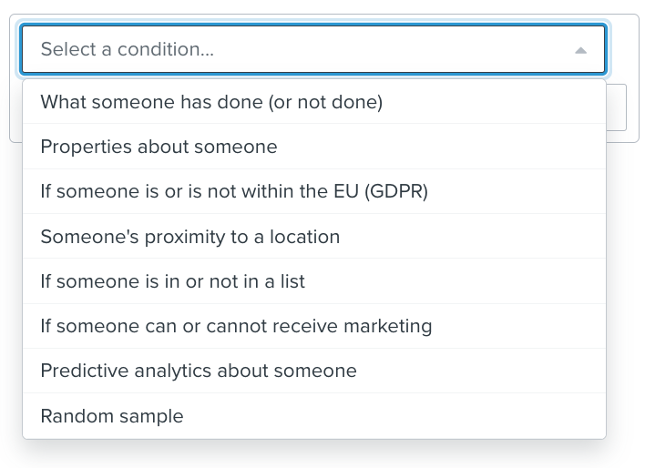 조건부 분할은 시각적 플로우 빌더의 구성 요소로, 하나의 플로우를 만든 다음 수신자에 대해 이미 알고 있는 정보(예, 성별, 위치, 과거 구매 이력 등).