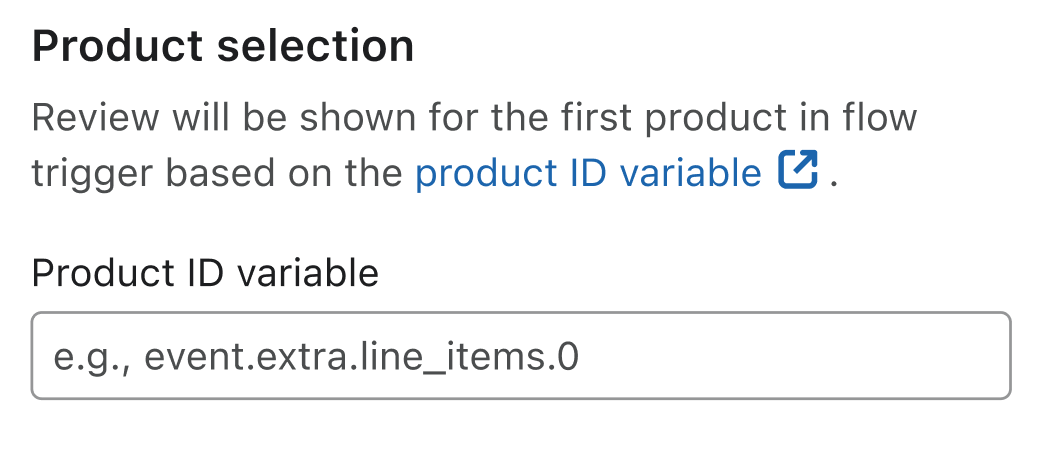 제품 ID 변수를 선택하여 관심 있는 제품과 관련된 동적 리뷰 견적을 표시하는 방법을 알아보세요. 이러한 변수는 이벤트마다 다르므로 흐름에 적합한 변수를 사용해야 합니다.