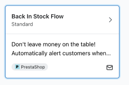 PrestaShop에 대해 사전 구축된 재입고 플로우를 선택합니다.