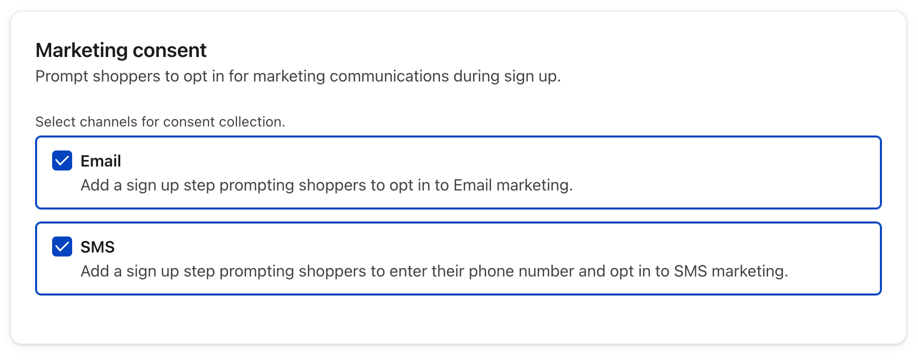 Klaviyo 내에서 클라비요 고객 허브 인터페이스에서 프로필에 이메일 및 SMS 마케팅 동의를 요청할지 여부를 제어할 수 있습니다.