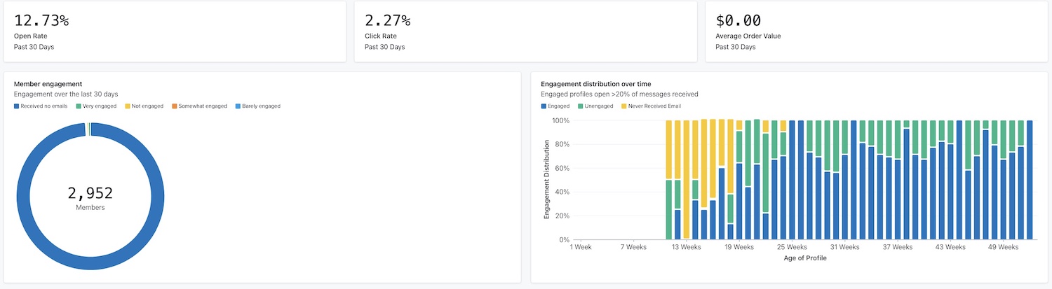 - 낮은 오픈율 및 클릭률 참여하지 않는 프로필은 30일 이상 이메일을 열지 않은 프로필입니다. 평균 오픈율이 20% 이상인 것을 목표로 해야 하며, 10% 미만이면 우려할 만한 수준입니다. 또한 4% 이상의 클릭률을 목표로 해야 하며 1% 미만은 우려할 만한 수준입니다.