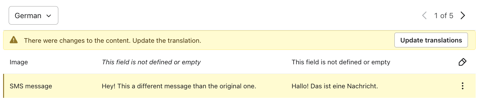 이미 번역한 후에 메시지의 원본 콘텐츠를 수정하면 번역 섹션의 검토 단계에 경고가 표시됩니다.